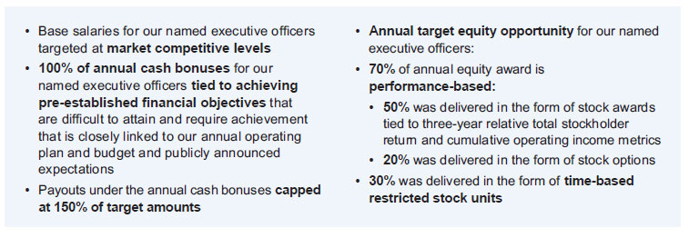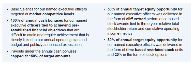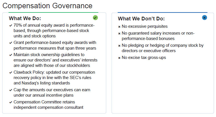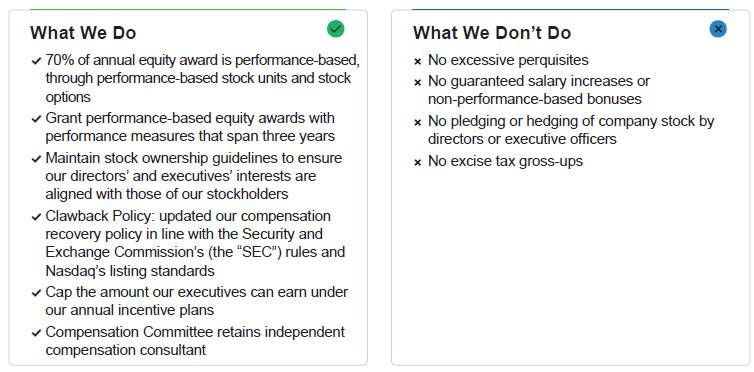 Consistent with our pay-for-performance philosophy, the Compensation Committee of the Board of Directors emphasized alignment with our long-term business goals in designing our executive compensation programs for 2024. Our executive compensation programs for 2024 reflected management’s continued commitment to our strategic plan.