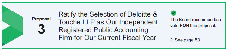 | • | FOR Proposal Three — approve the ratification of the selection of Deloitte & Touche LLP as our independent registered public accounting firm for our current fiscal year |