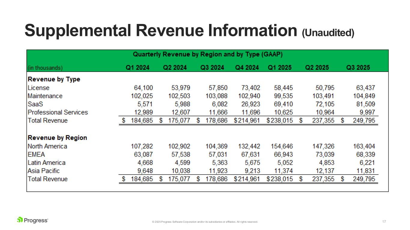 17© 2025 Progress Software Corporation and/or its subsidiaries or affiliates. All rights reserved. Supplemental Revenue Information (Unaudited)